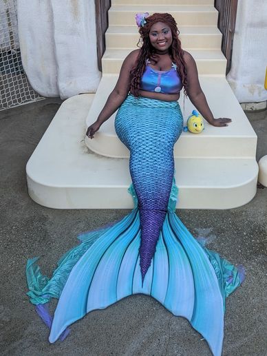 This little mermaid is inspired by the 2023 live action film and brings the magic of the ocean to life. She creates an unforgettable, immersive experience for guests of all ages.